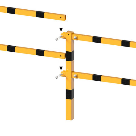 La barandilla de protección para fijación al suelo es flexible e inclinable, con barras superior e intermedia. Se trata de postes multidireccionales que garantizan la máxima flexibilidad y una adaptación a medida alrededor de todo tipo de equipos, y pueden instalarse en cualquier ubicación. Un accesorio de optimización de la seguridad puede integrarse fácilmente con la barandilla. Es ideal para cualquier entorno de trabajo intensivo que requiera una seguridad inigualable y está diseñada para ofrecer una alta resistencia incluso en las condiciones climáticas más exigentes. Estas barandillas presentan una elevada tolerancia a los daños por impacto y son adecuadas para vehículos pesados.