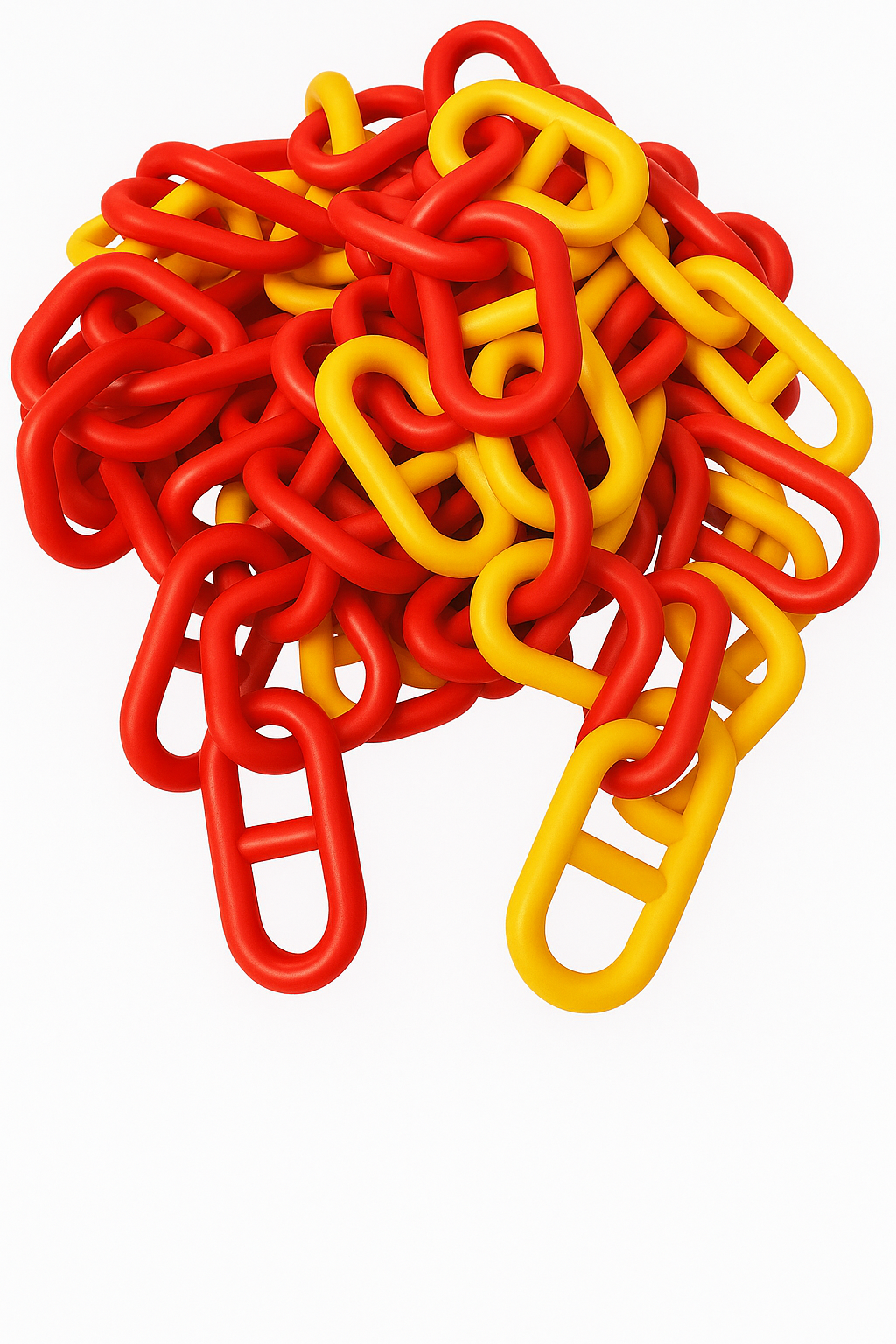 cadena de plástico duradera y versátil diseñada para una amplia gama de aplicaciones en interiores y exteriores. Ideal para su uso con postes separadores, conos de tráfico y barreras de seguridad.