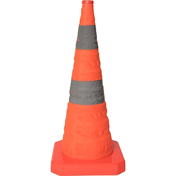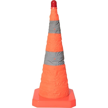 Cono muy práctico que puede desplegar fácilmente. El cono incorpora una luz de advertencia que lo ilumina desde el interior, protegiéndolo así de la intemperie. Excelente para su uso en zonas de accidente y como marcador para barricadas y zonas peligrosas.