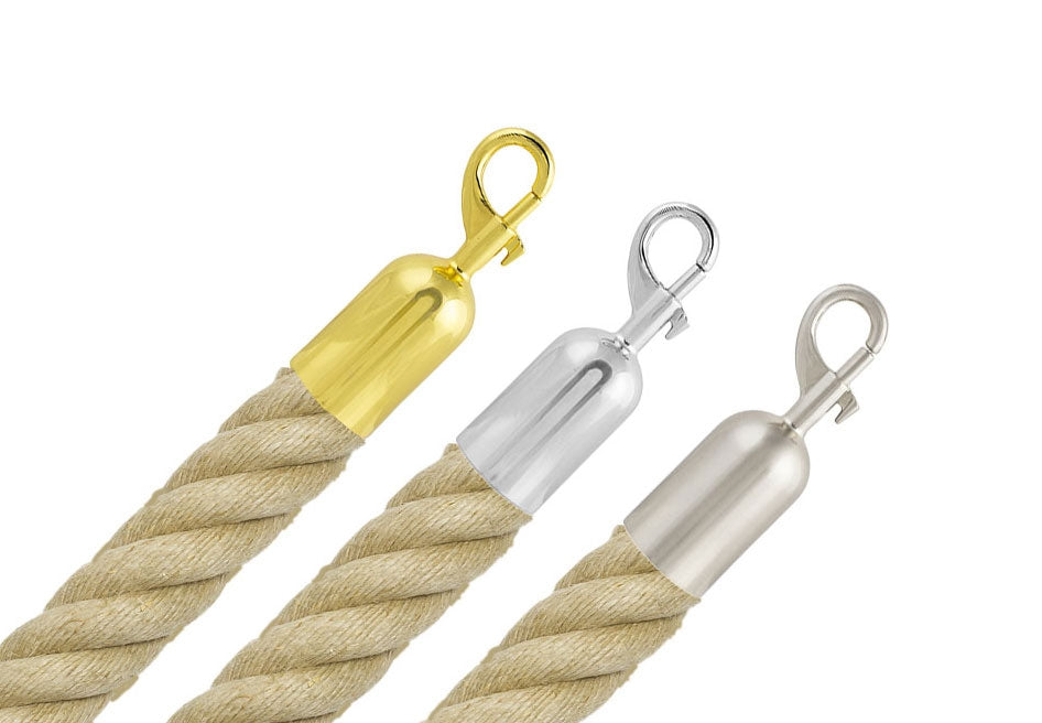 Cree un sistema de cola o separación elegante y profesional con nuestra cuerda de alta calidad con aspecto de cáñamo, fabricada en Spleitex duradero (Polyhemp sintético). Cada cuerda se entrega completamente montada con dos terminales con mosquetón, lista para su uso inmediato. Elija cualquier longitud entre 1–5 metros utilizando nuestro configurador.