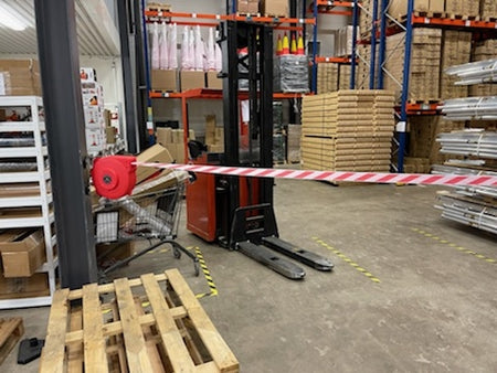 - Con una cinta de 50mm para una mayor visibilidad y eficacia en la delimitación de áreas.