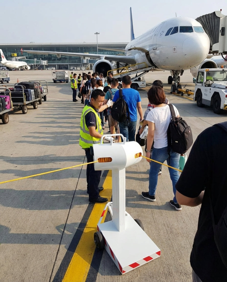 Flexibarrier -Rewind- Sistema de gestión de acceso/guía de pasajeros (PAM) es un sistema manual fácil de usar que resiste todo tipo de condiciones meteorológicas. Como la cuerda es delgada, no atrapa el viento y, por lo tanto, el Flexibarrier -Rewind es la solución perfecta para situaciones en exteriores.