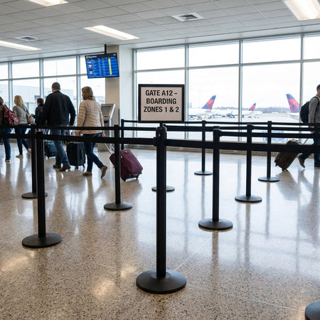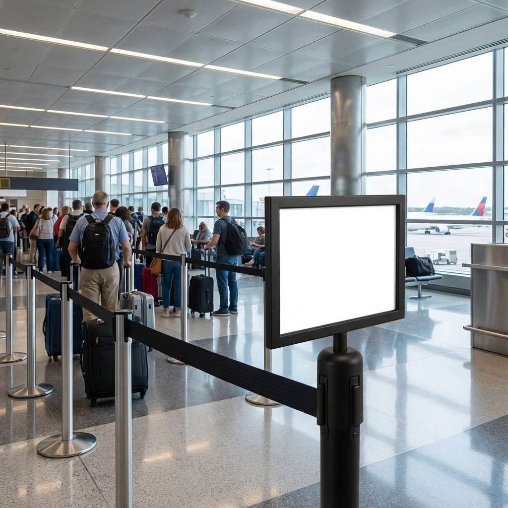 Los marcos para barreras de cinta retráctiles están equipados con un adaptador superior para poste que se desliza sobre la parte superior del poste para lograr un ajuste firme.