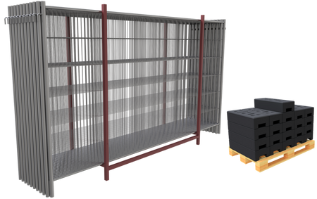 Este palé de transporte es ideal para obras, empresas de alquiler y operaciones logísticas que manipulan vallado móvil.