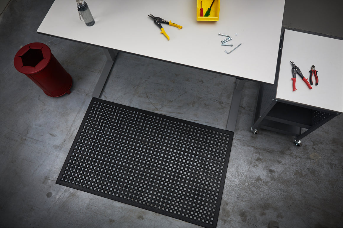 Safe Top es una alfombra antideslizante polivalente fabricada con caucho natural. Proporciona una resistencia al deslizamiento fiable y, al mismo tiempo, permite que el agua y los derrames se evacuen a través del diseño abierto.