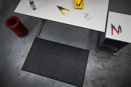 La alfombra cuenta con bordes biselados para reducir los riesgos de tropiezo y es adecuada tanto para entornos secos como húmedos, en interiores y exteriores. Safe Top funciona igual de bien como felpudo de entrada de alta resistencia o como pavimento antideslizante y antifatiga en puestos de trabajo, como barras y zonas industriales ligeras.